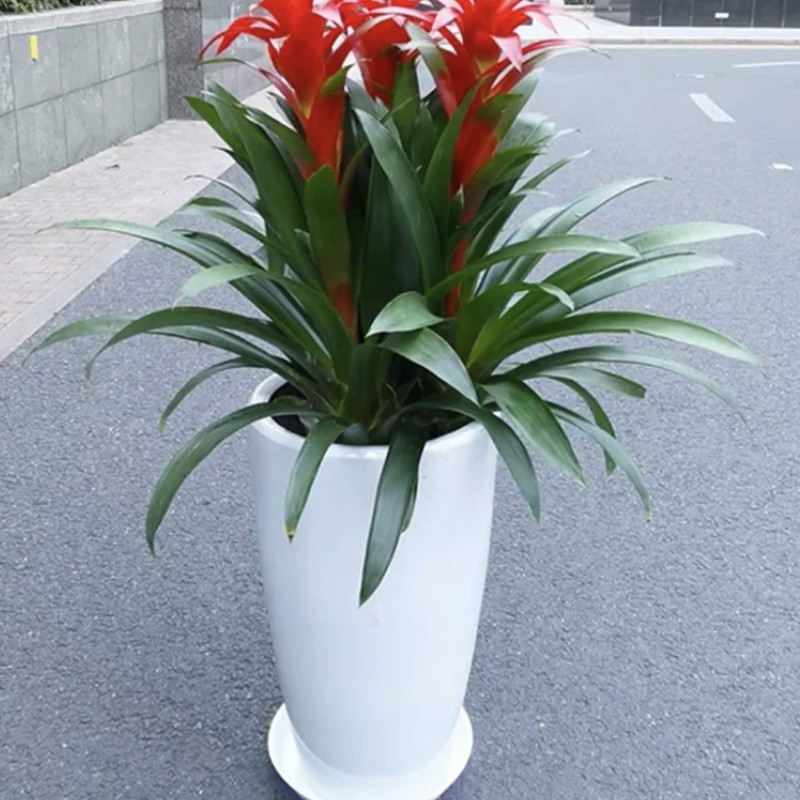 由三组植物构成,“鸿运当头”通常指凤梨科植物,其花朵颜色鲜艳似火,摆放在室内能带来热闹喜庆的感觉,寓意好运来临。