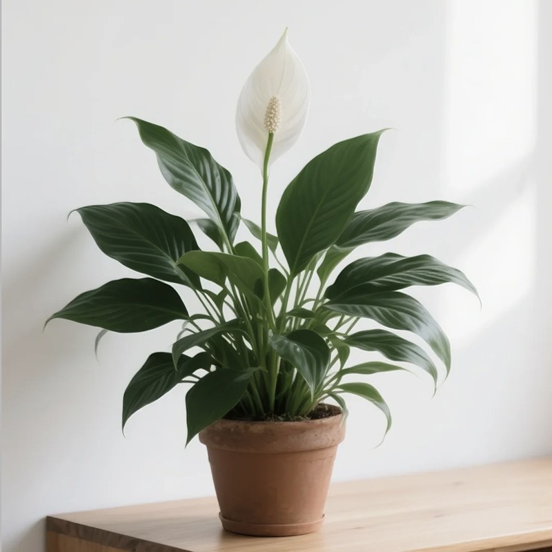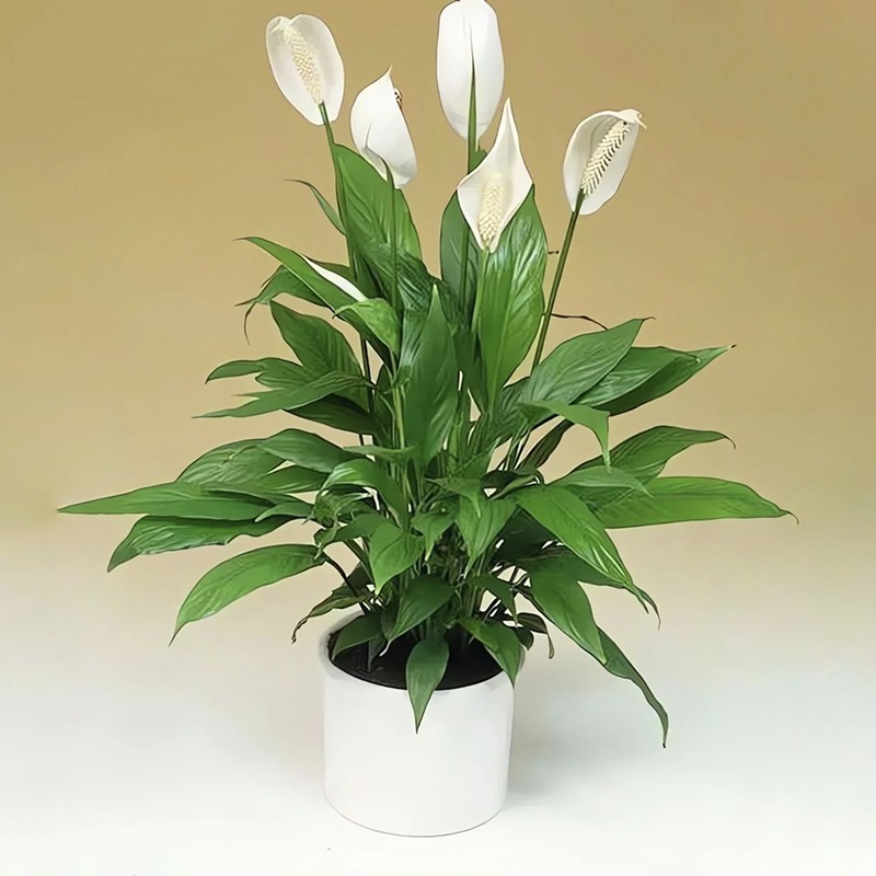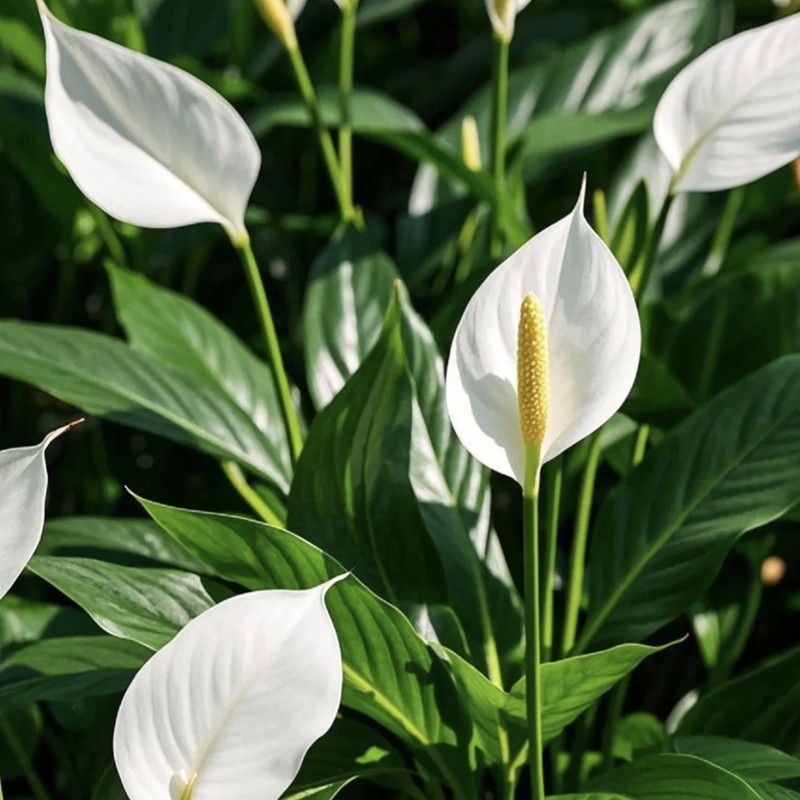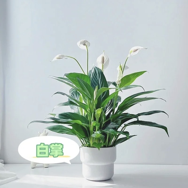 多年生常绿草本,佛焰苞洁白如雪,呈舟形,叶片深绿,清新淡雅,耐阴性强,适合室内盆栽,可增添生机。