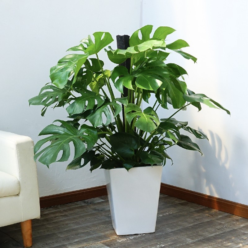 叶片形状奇特,有孔裂,宛如龟背,茎节粗壮,是室内大型观叶植物,能营造热带风情氛围。